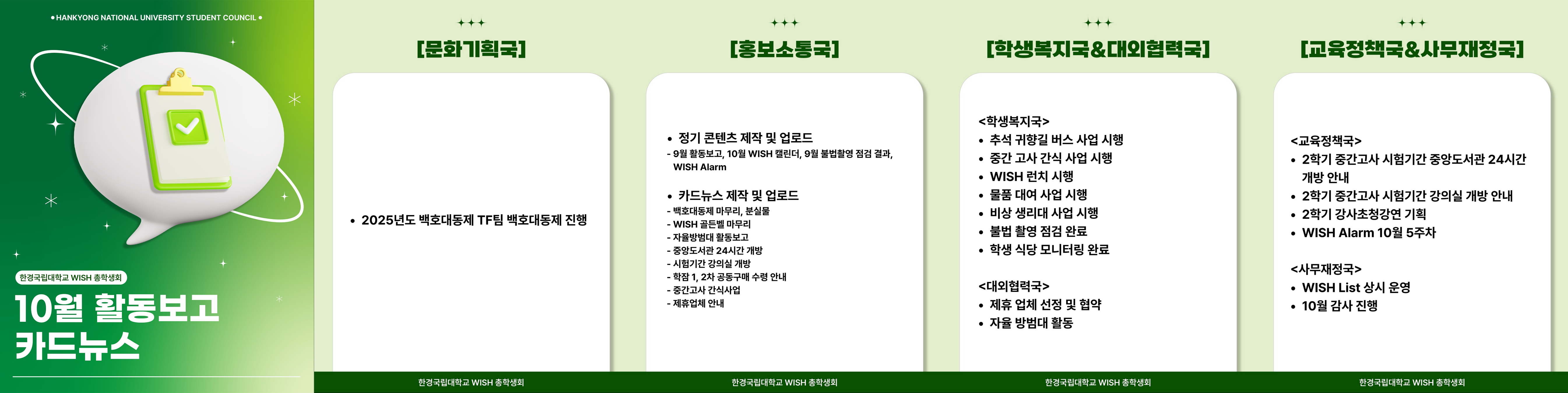 2025년 10월 활동 보고를 통해 학우분들께 현재 업무 진행 사항을 전달드립니다.