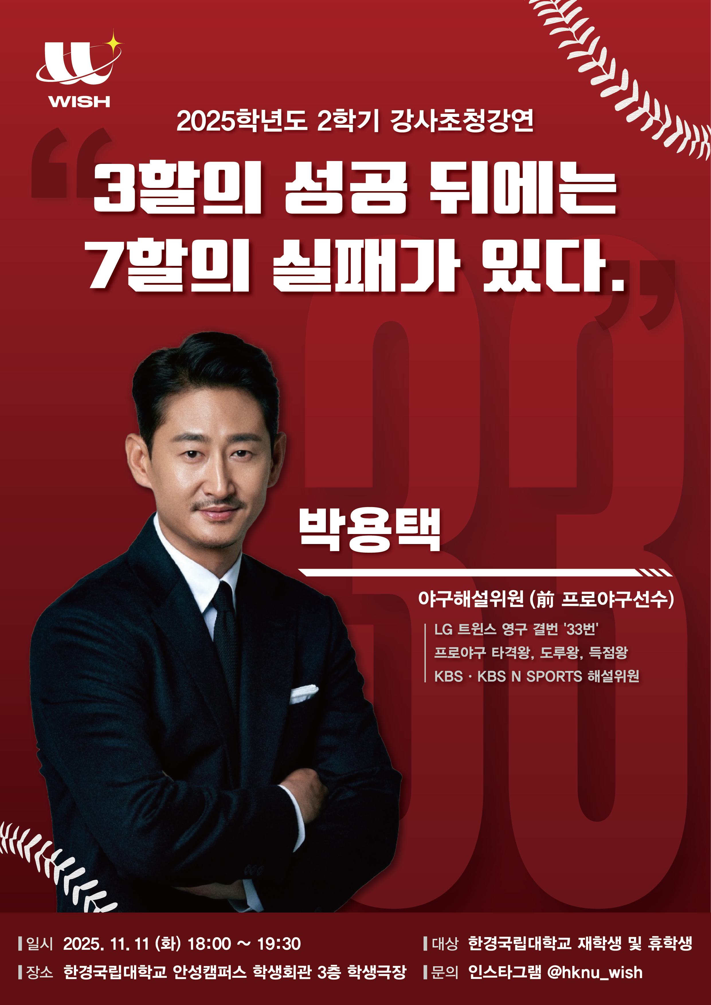 강연자 : 박용택 야구해설위원 (前 프로야구선수)