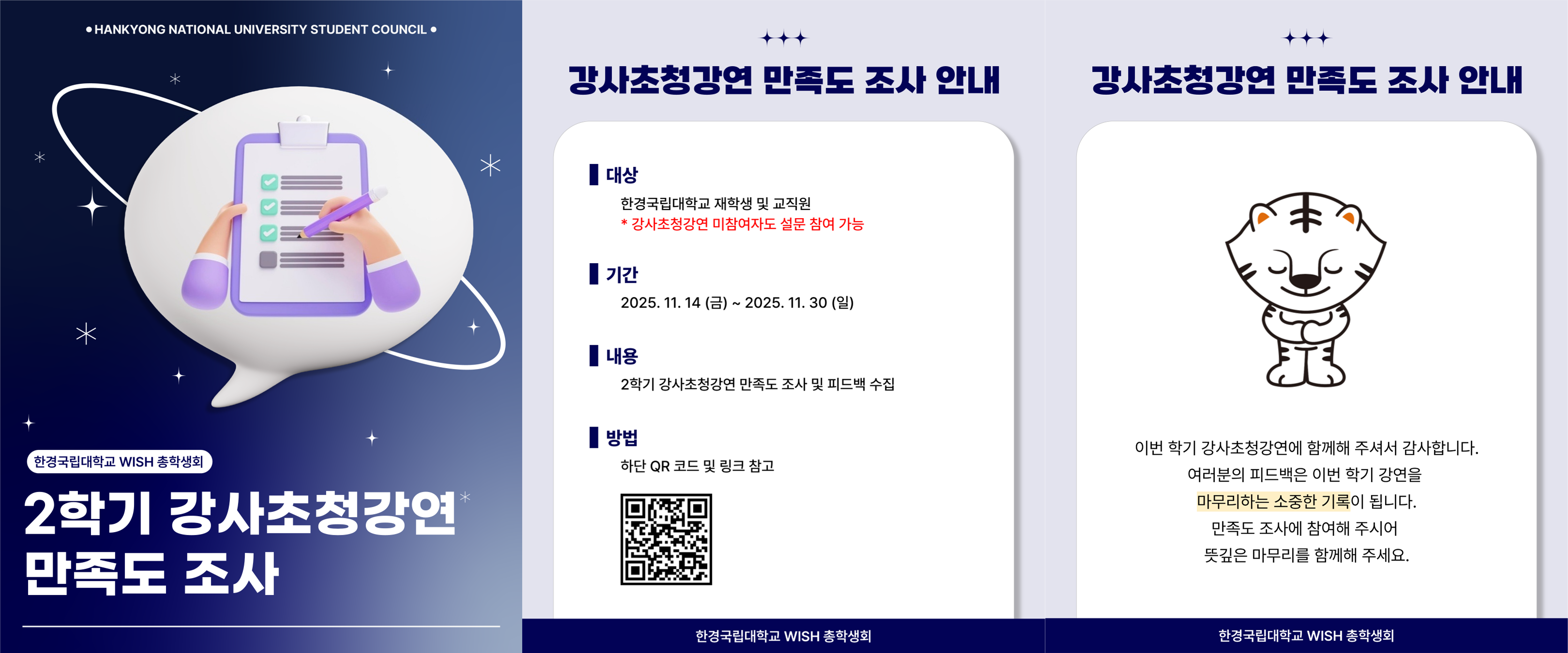 - 내용 : 2학기 강사초청강연 만족도 조사 및 피드백 수집