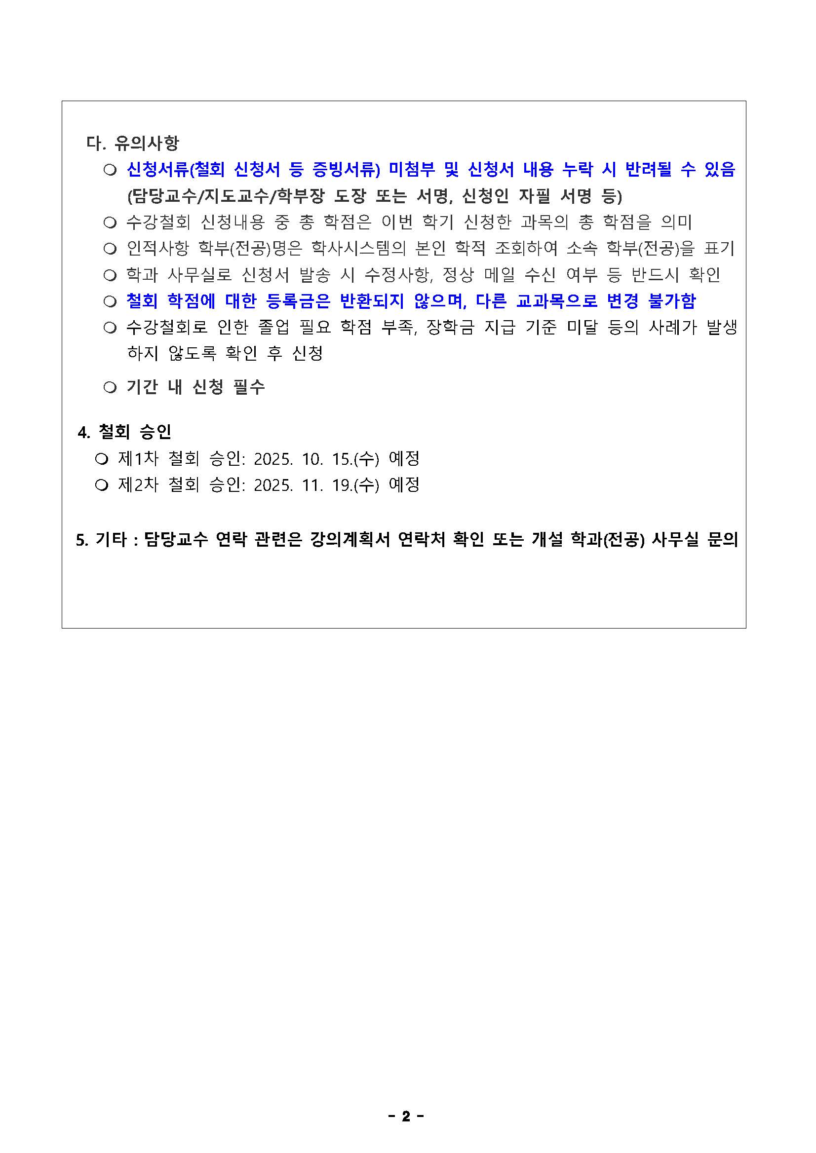 2025학년도 2학기 수강철회 안내