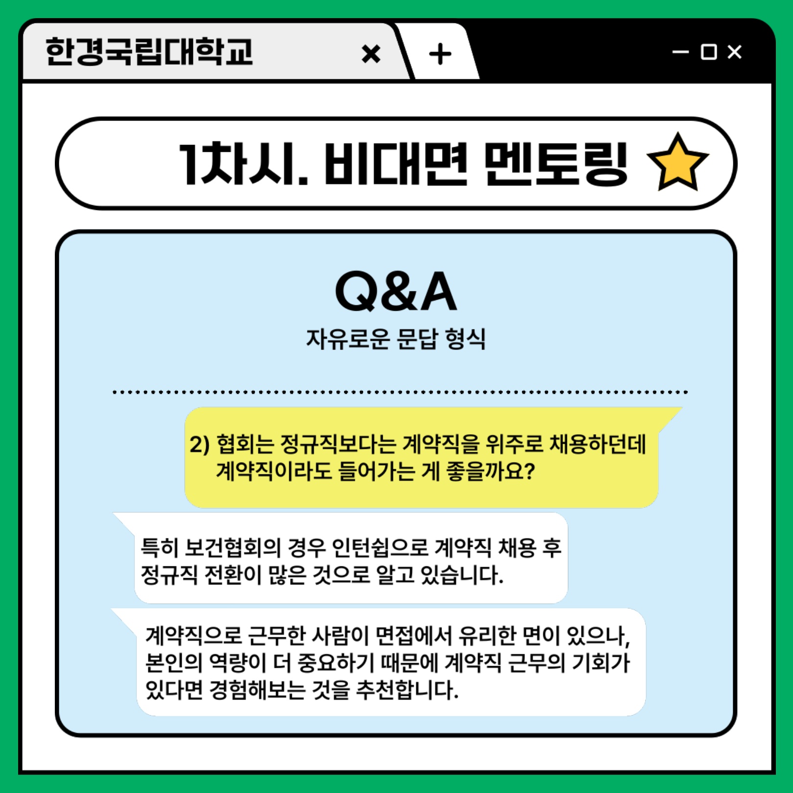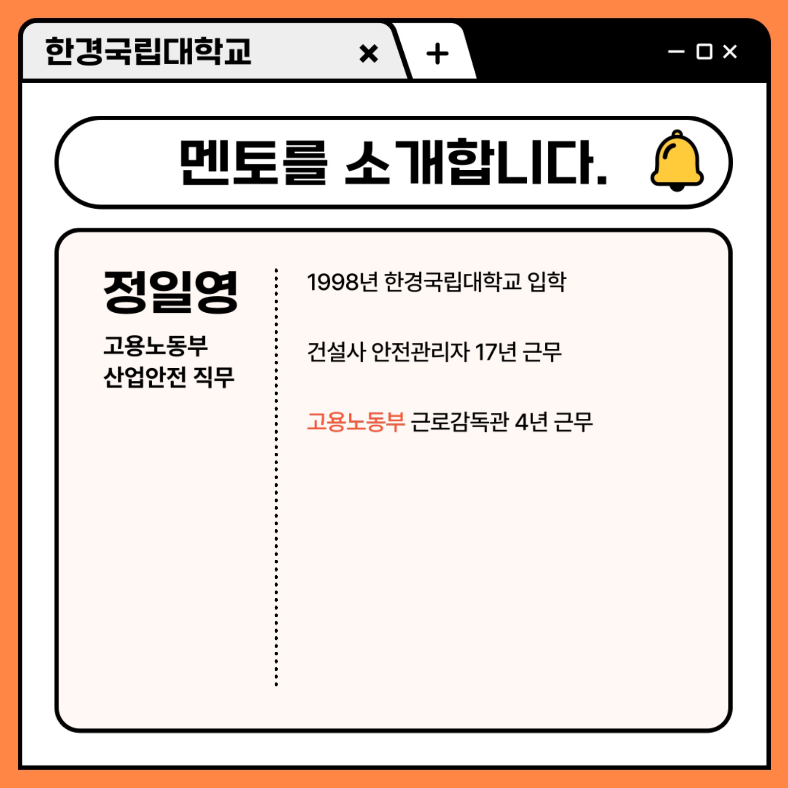 [비교과활동] 졸업생-재학생 멘토링 카드뉴스 / 98학번 정일영 (고용노동부)