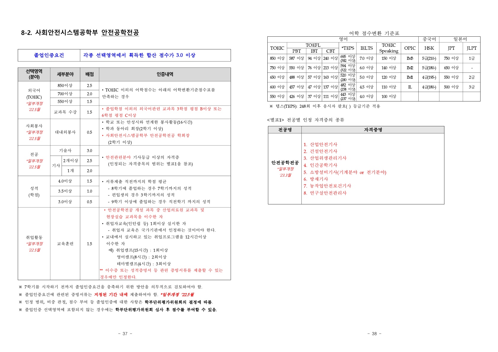 안전공학전공 졸업요건(2026년 2월 졸업예정자까지 적용)